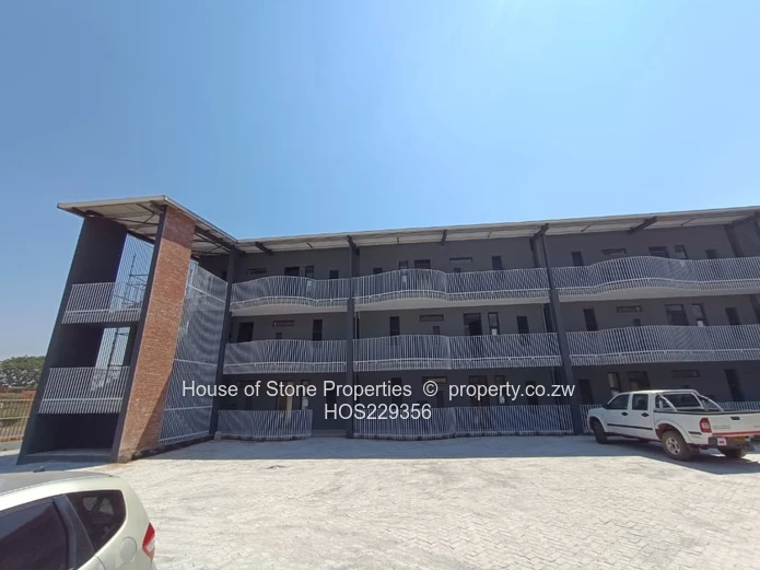 Each apartment offers 2 spacious bedrooms, including a main ensuite with shower and built-in cupboards. The open-plan kitchen and lounge extend seamlessly onto a private balcony, creating a light-filled and functional living space. Kitchens are fitted with granite countertops, a gas stove with oven, and a scullery for added practicality. A common bathroom with a shower and toilet serves the second bedroom and guests.